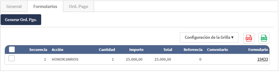 Dentro de la pestaña formularios, se podrá ver la acción que se generara en el formulario y en el caso de que el comprobante se encuentre “Confirmado”, se va a poder visualizar el Id del formulario generado.