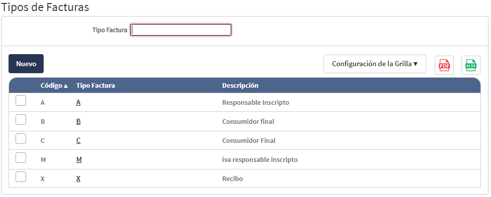 TipoComp_M_Execute: Tipo de Comprobante Factura M